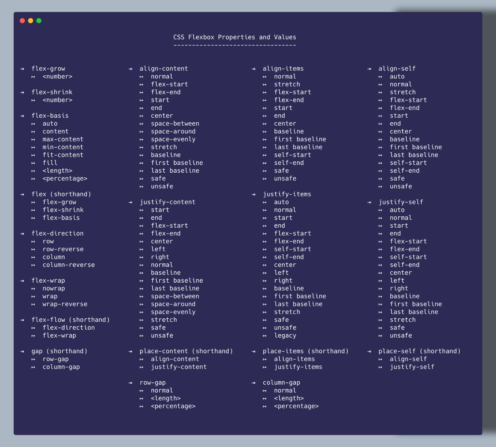 ![]() | CSS Flexbox Properties and Values.jpeg | 2023-06-15 21:17 | 213 KB |
